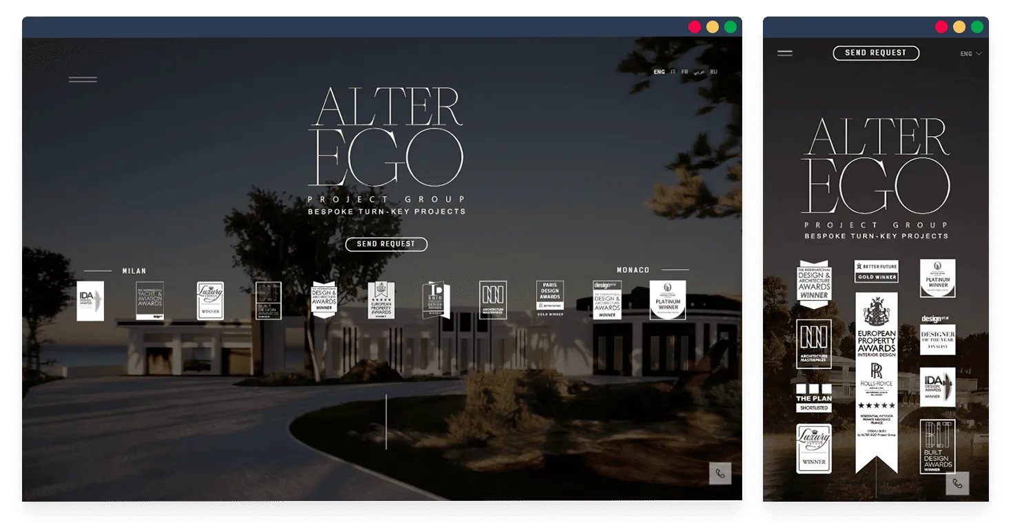 Alter Ego Project Group — архитектурное бюро премиум класса, семейный бизнес, основанный в 2003 году. Генеральные офисы компании расположены в Милане и Москве. На протяжении всего этого времени основной состав Alter Ego не менялся, благодаря чему в настоящий момент это сплоченная команда единомышленников, способная максимально близко понять и воплотить пожелания заказчика