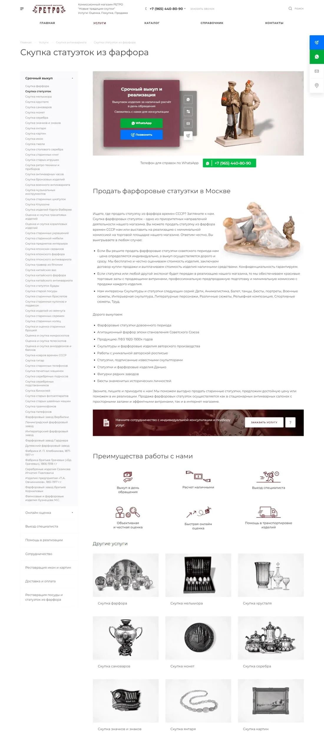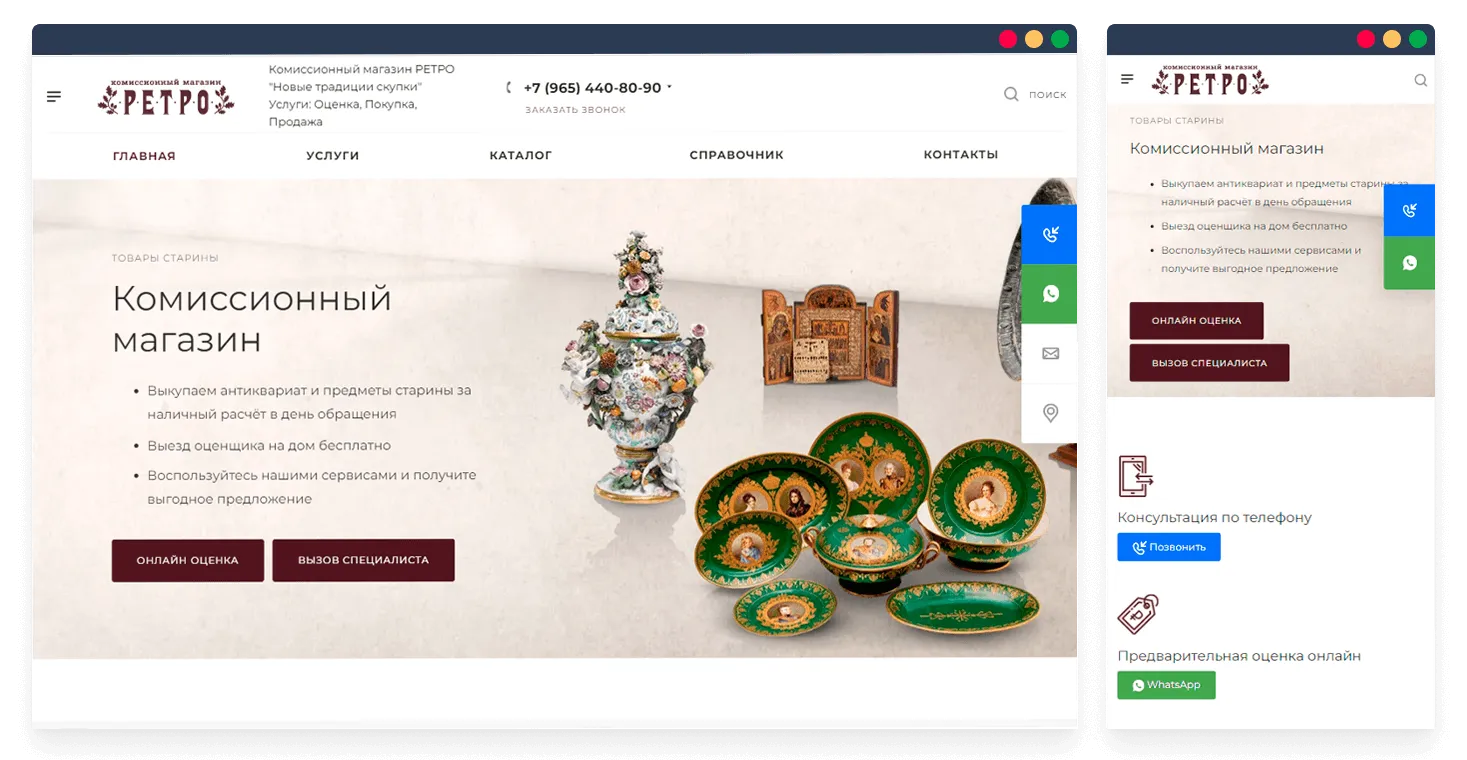 Задачи: Клиент обратился в нашу компанию с просьбой создать сайт антикварной лавки и комиссионного магазина 2 в 1, разработать индивидуальный дизайн, проработать и наполнить главную страницу и страниц услуг для возможности дальнейшего продвижения ресурса в поисковых системах.